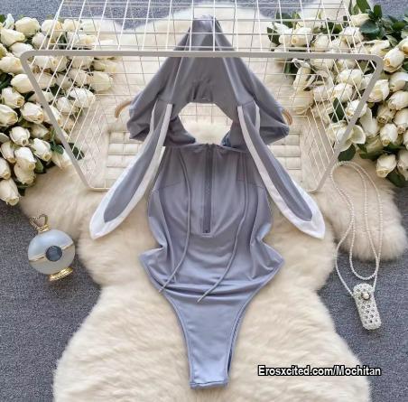 Me puse mi traje de conejita gris jijiji🤭 me saqué el sostén y me agarro mis pezones?